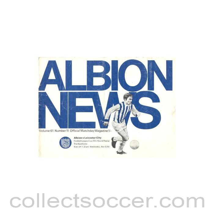 West Bromwich Albion v Leicester City official programme 05/11/1969 Football League, 20 pages, in very good condition.