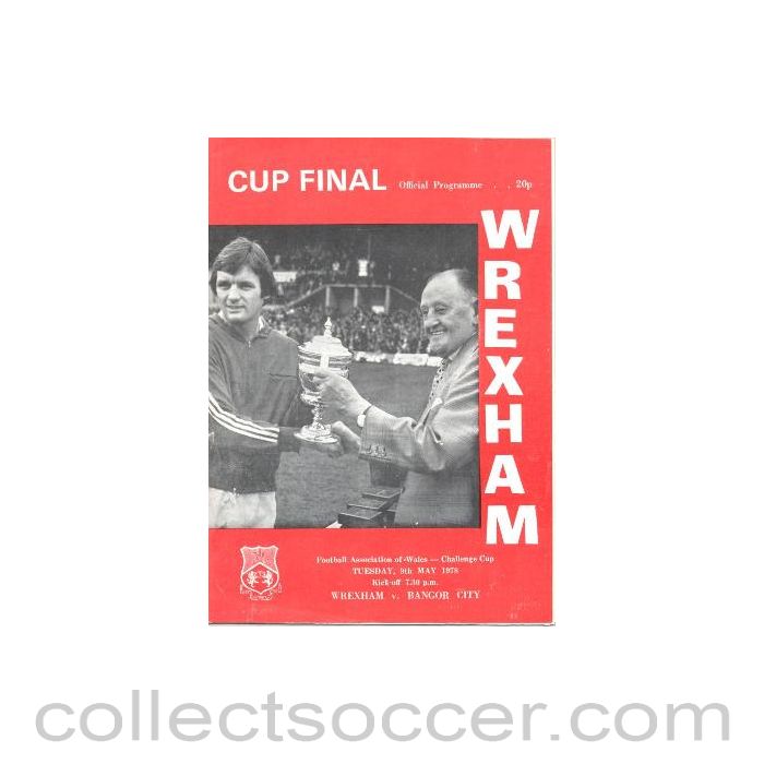 1978 - Wrexham v Bangor official programme 09/05/1978 FA of Wales Cup Final
