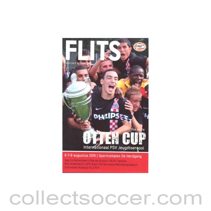 Youth Tournament Otten Cup 06-08/08/2010 at PSV Eindhoven, 24 pages, in mint condition. The teams are: Sparta Rotterdam, Pao de Acucar Brazil, Twente, Anderlecht, Ajax, Borussia Monchengladbach, Tottenham Hotspur and PSV Eindhoven.
